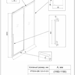 Комплектуется боковой панелью SP-30GR, образуя душевой угол PTC-SP-30GR