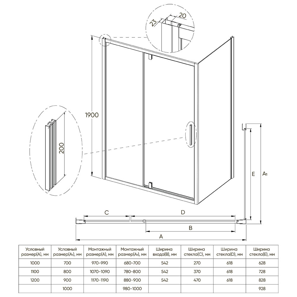Душевой угол распашной. Дверь открывается внутрь и наружу. Такая конструкция дверей позволяет сэкономить пространство. Данная модель — это отличное решение для ванных комнат с минимальной площадью. Душевой угол состоит из распашной двери