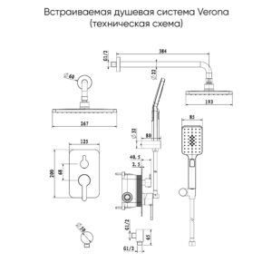 Встраиваемая душевая система VERONA графит брашинг
